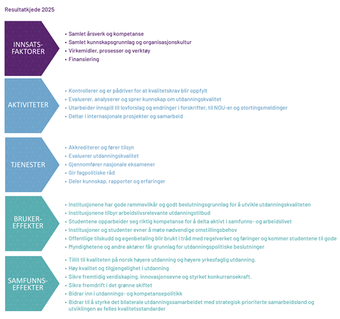 I tildelingsbrevet for 2025 ble det stilt en rekke forventinger som alle er knyttet til resultater NOKUT skal oppnå. Forventingene gjaldt: